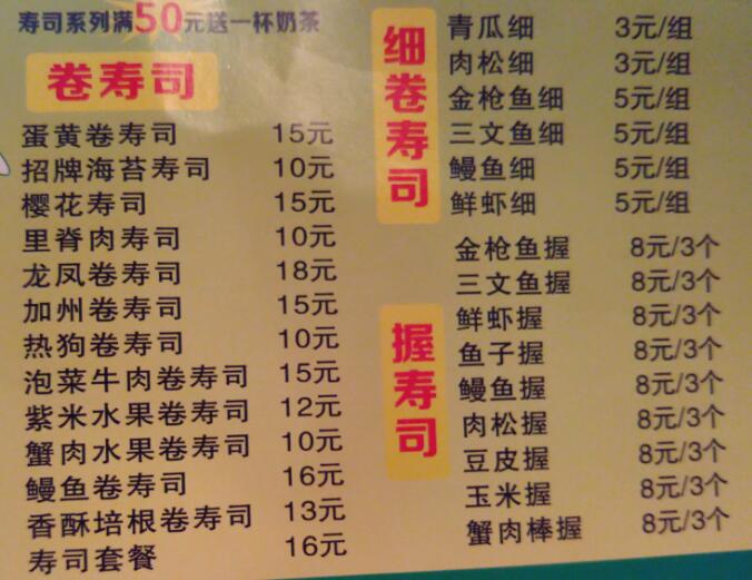 美味日本寿司,加减奶茶,可以外送!