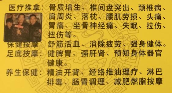 主要经营项目有:推拿、按摩、足疗、拔罐、刮痧、减肥等