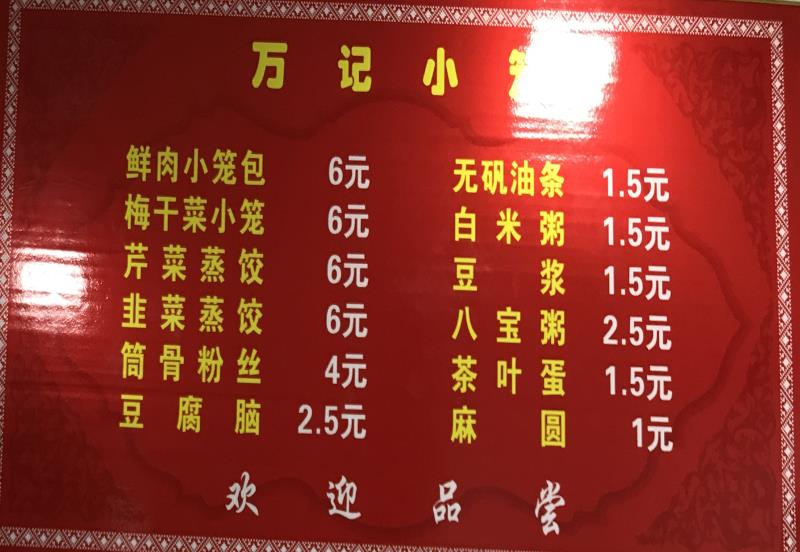提供:无矾油条、小笼包、豆腐脑、八宝粥、白粥、豆浆。