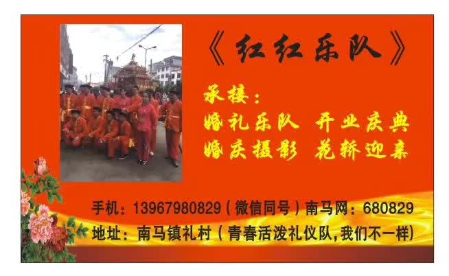 承接:婚礼乐队、开业庆典、婚庆摄影、花轿迎接。